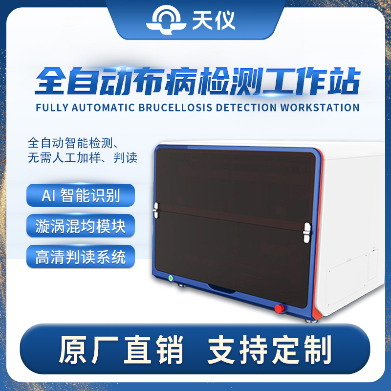 【产品简介】一、全自动布病检测工作站系统原理、规格1.采用布鲁氏杆菌检测方法学国标检测法中虎红平板凝集试验、结合机械手臂自动添加样本、虎红抗原、智能涡轮混匀系统、AI图像识别、专用软件分析系统···
