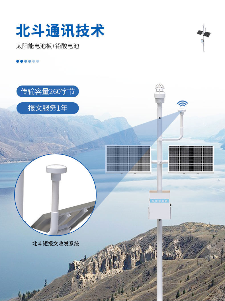 【产品简介】一、北斗生态环境监测站产品概述北斗生态环境监测站FZ6是我司自主研发的利用北斗三号区域短报文通信技术和气象环境监测技术结合而成的一种自动化气象监测设备。该系统设备具有自主运行实时传···