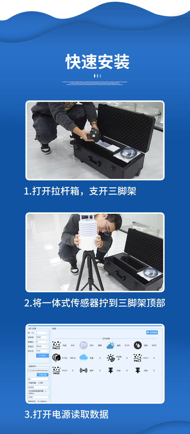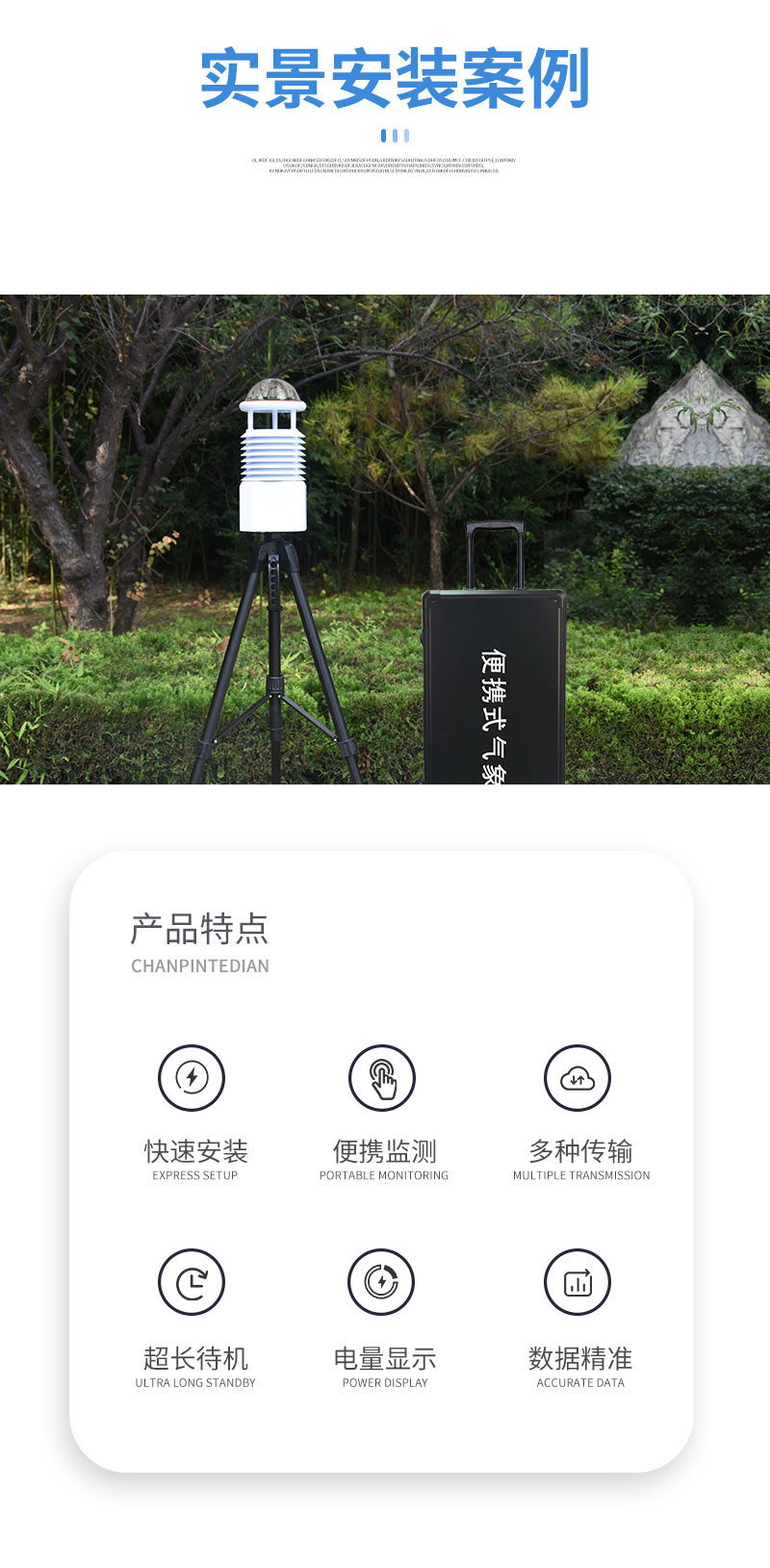 BQX12便携式气象仪是一款高度集成、低功耗、可快速安装、便于野外监测使用的高精度自动气象观测设备。