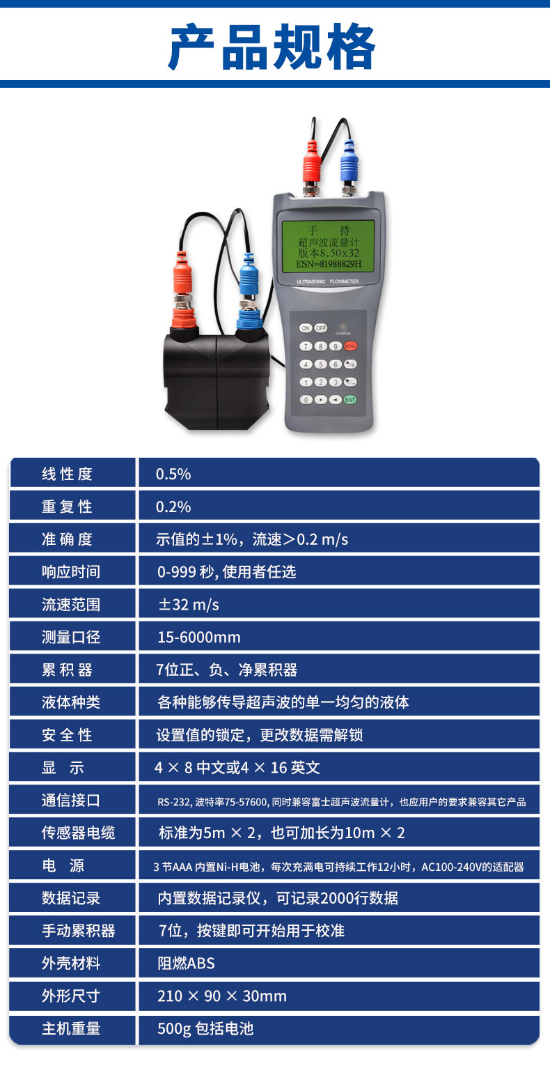 超声波流量计除具有同类产品一般的使用功能外,同时还兼有以下特点: