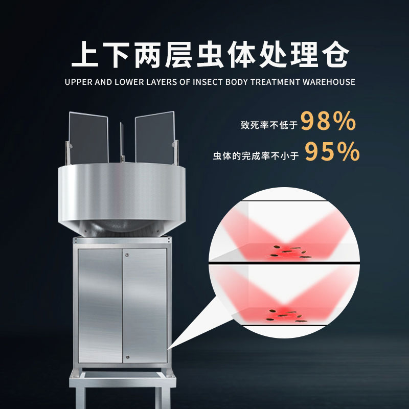 上下两层远红外虫体处理仓,致死率不低于98%,虫体的完成率不小于95%。