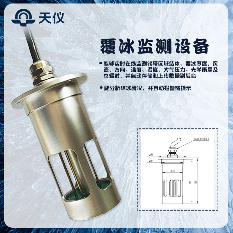 1、覆冰厚度:测量原理微波检测,最大测量厚度:30.00mm,检测分辨率:0.01mm;功率:<1W(选配融冰装置15W)