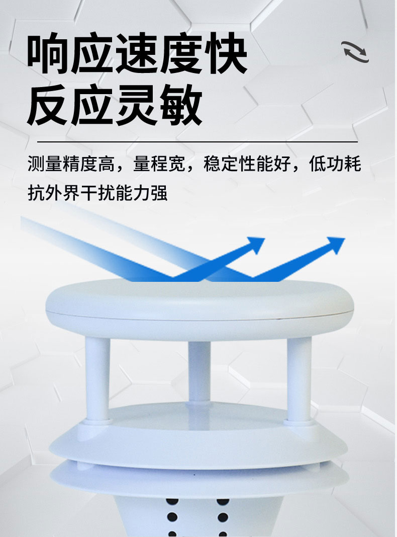 3、风速、风向、温度、湿度、大气压力、压电雨量六要素一体式