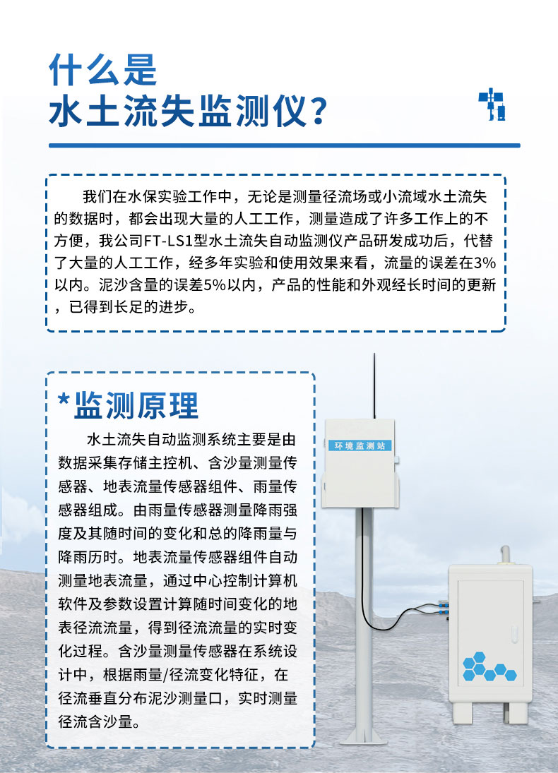【产品简介】一、径流水土流失监测设备高配款产品介绍在径流场与小流域的水土流失监测工作中,传统人工测量流量和泥沙等数据存在工作量庞大、效率低下的问题,同时人力成本高数据误差大。水土流失自动监测系···