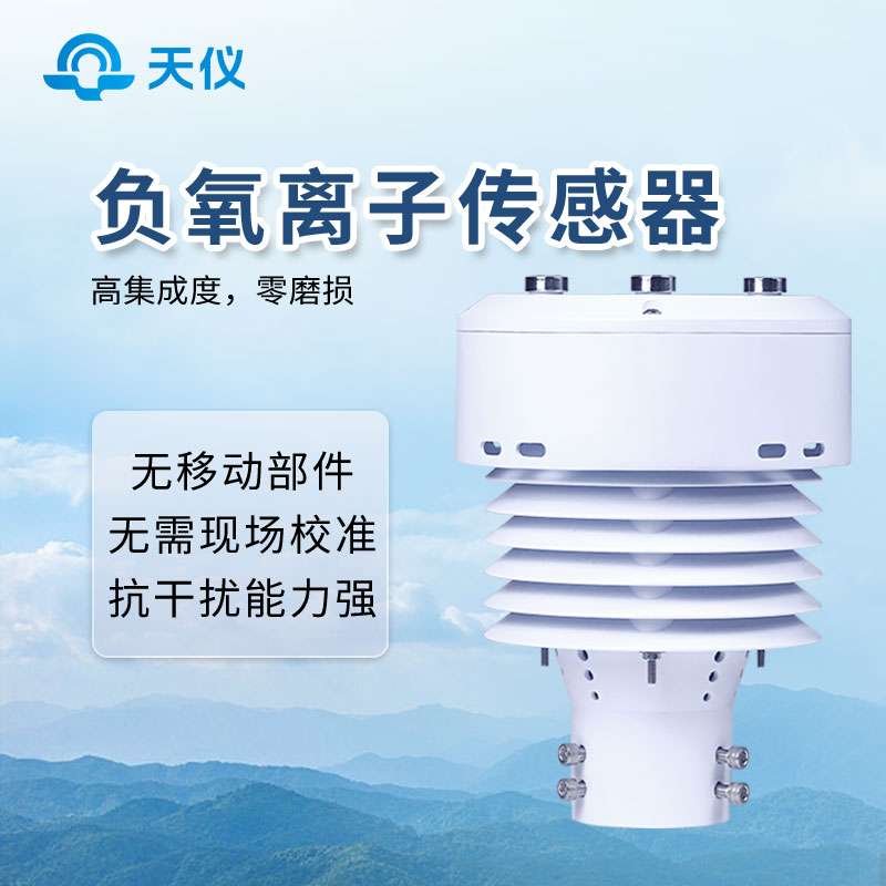 负离子传感器创新性地将负氧离子、空气温度、湿度、PM2.5、PM10等气象要素通过一个高集成度结构来实现,可实现户外气象参数24小时连续在线监测,通过数字量通讯接口将五项参数一次性输出给用户。