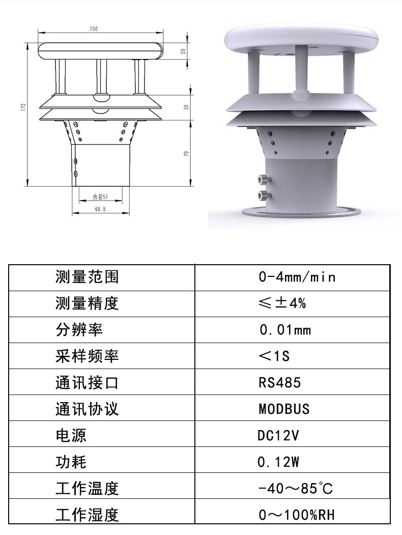 三、压电雨量传感器技术参数