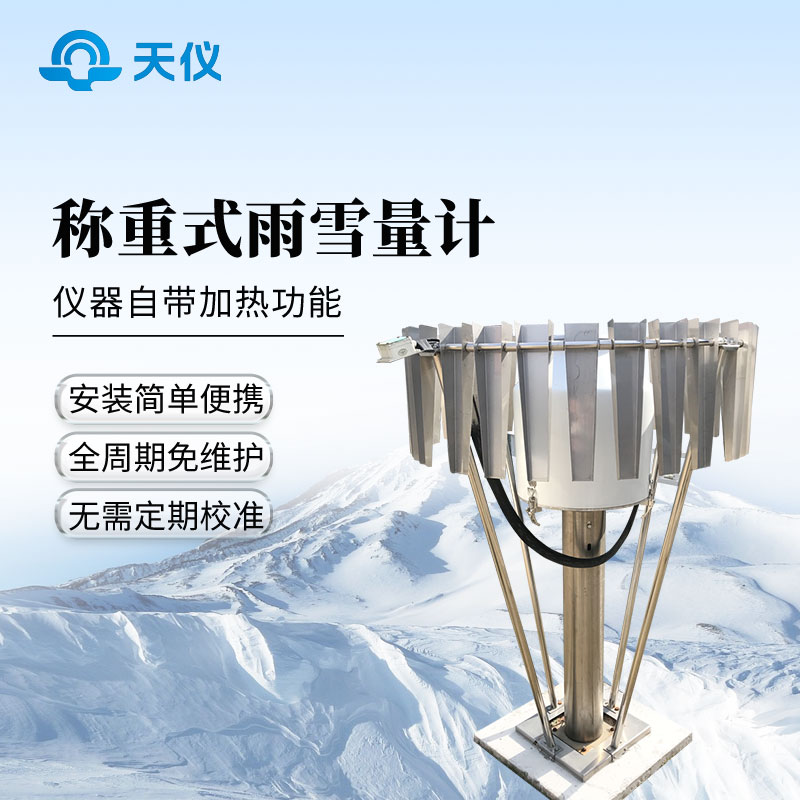 称重式雨雪量计是一种高精度、全天候的降水量监测设备,可进行液态、固态及固液混合态的降水量监测。其高精度的传感器和平衡系统可以测量降水强度,计算累计降水量,并可拓展计算雨水蒸发量等参数。产品可接入云端,为用户提供准确、实时、便捷的降水数据。