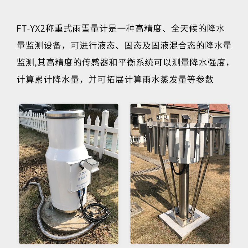 【产品简介】一、称重式雨雪量计产品简介称重式雨雪量计是一种高精度、全天候的降水量监测设备,可进行液态、固态及固液混合态的降水量监测。其高精度的传感器和平衡系统可以测量降水强度,计算累计降水量,···