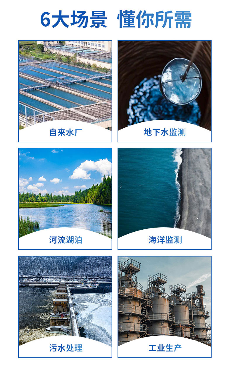 4、多种应用:现场快速测定、应急监测、或对地下水、河流水、湖泊水源、城市管网水长期在线监测。