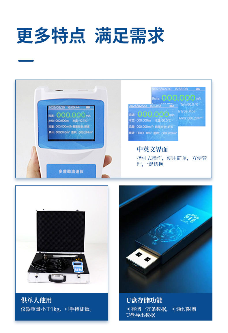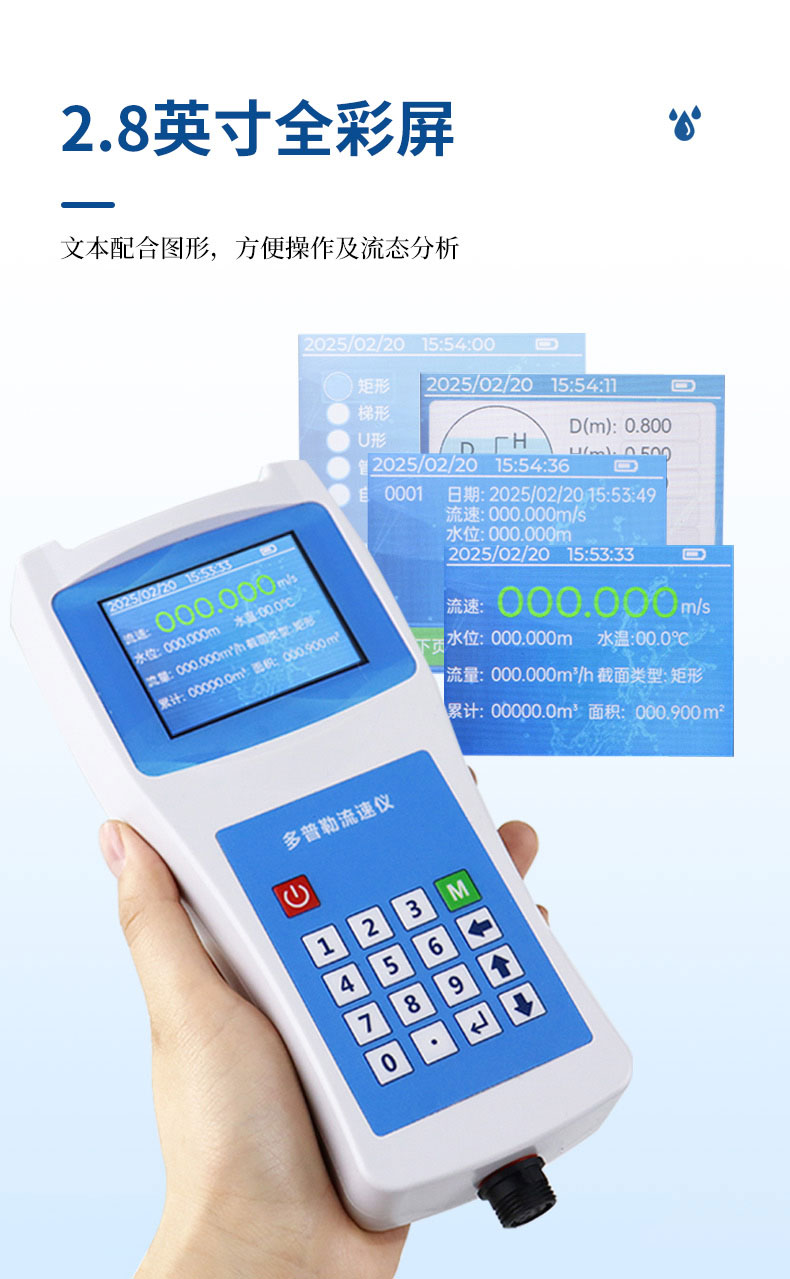 多普勒流速仪是应用于河流、明渠及管道等工况的流速流量检测仪器。其采用超声波探测技术,测量精度高、稳定性好、受环境因素影响小,无转动件、维护频次低、工作可靠性高,是便携流速流量测量的首选产品。