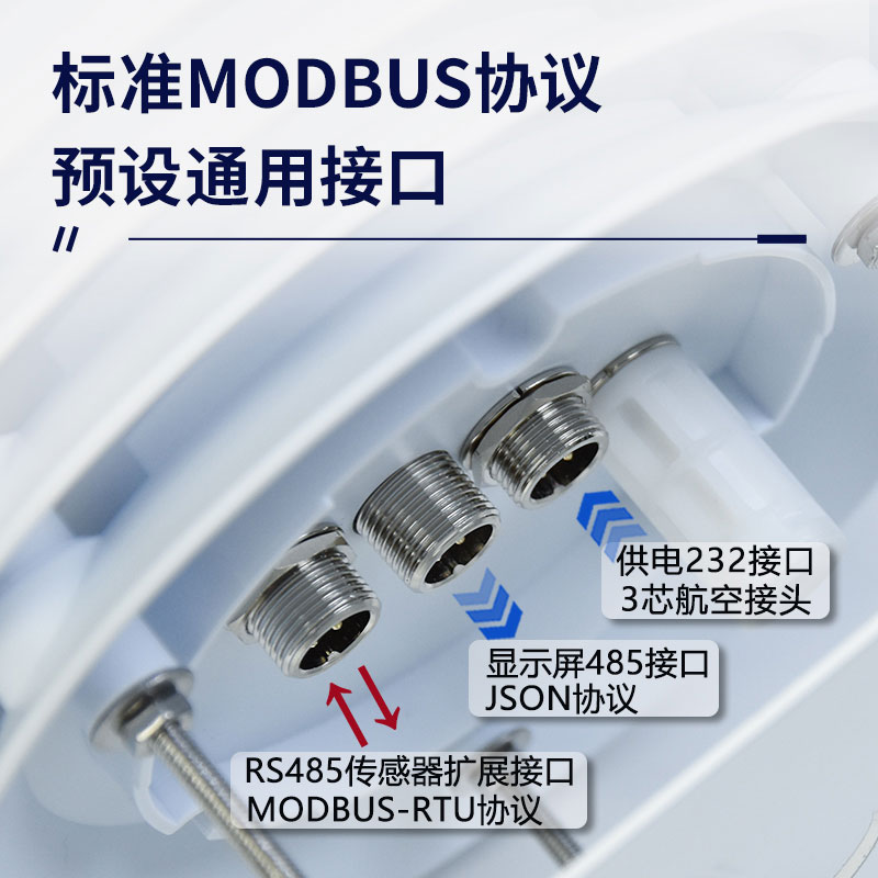 5、产品设计输出信号标配为RS485通讯接口(MODBUS协议);可选配232、USB、以太网接口,支持数据实时读取☆