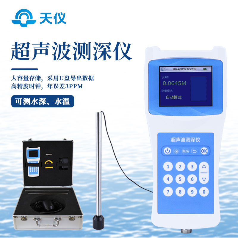 便携式测深仪是测量水库、湖泊、江河、浅海等水体的便携式测深仪,测深时将超声波换能器置于水面或一定位置,利用超声波在水中的固定声速VC和超声波发射到接收的时间T,仪器自动换算出水深H。本品是我司积多年生产经验,吸取了多种同类产品优点,而开发的一款方便适用的手持式超声波测距仪表。超声波收发转换电路采用专用大规模集成电路,元件贴片率99%,并以液晶显示测深结果,保证了产品的长期可靠性,同时将其功耗降到了极低。具有测量精确、耗电省、可靠性高、使用方便、操作简单、测量速度准确、携带方便等优点。仪器可在静水中测深,也可在具有一定速度的水中测深;水流速度可达5m/秒左右,是水文测验、水电厂库区、湖泊、河道勘测和环境水域监测的理想水深测量仪器。