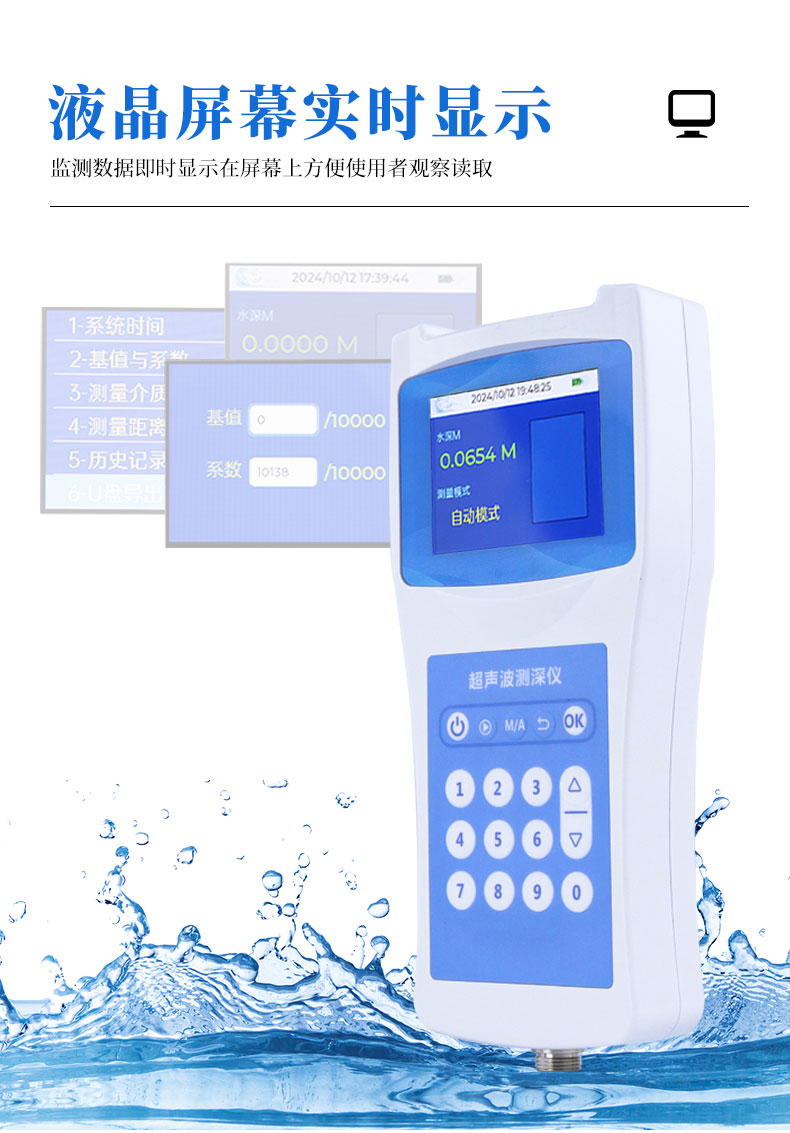 【产品简介】一、水深水温探测仪产品简介水深水温探测仪是测量水库、湖泊、江河、浅海等水体的便携式测深仪,测深时将超声波换能器置于水面下一定位置,利用超声波在水中的固定声速VC和超声波发射到接收的···