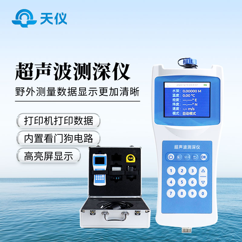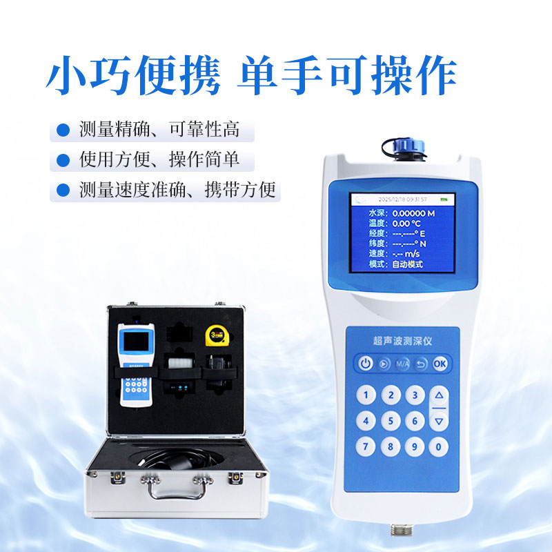 【产品简介】一、多功能测深仪产品简介多功能测深仪是测量水库、湖泊、江河、浅海等水体的便携式测深仪,测深时将超声波换能器置于水面下一定位置,利用超声波在水中的固定声速VC和超声波发射到接收的时间···