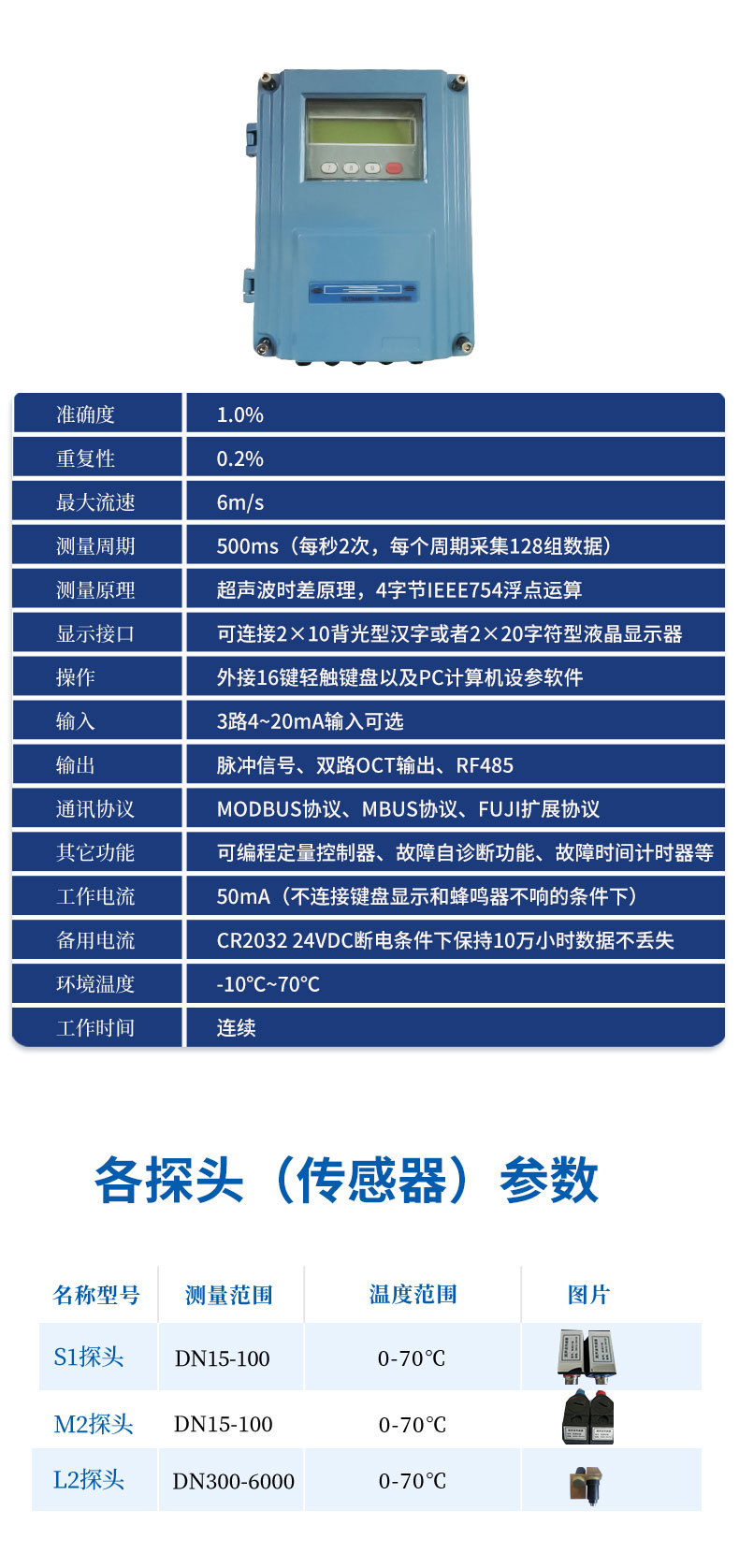 | 传感器 | 外夹式 | M2适用管径DN50~700mm |