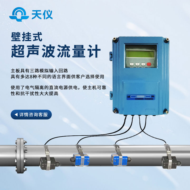 壁挂式超声波流量计集本公司十多年专业生产制造超声波流量计的技术与经验,采用TI的MFP430FG4618低功耗单片机,是性能高、价格低、可靠性好、功能强大的全新超声波流量计产品。