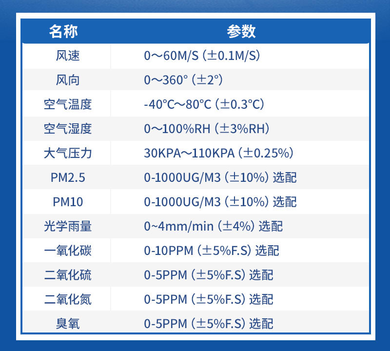 三、防爆型气象站技术参数