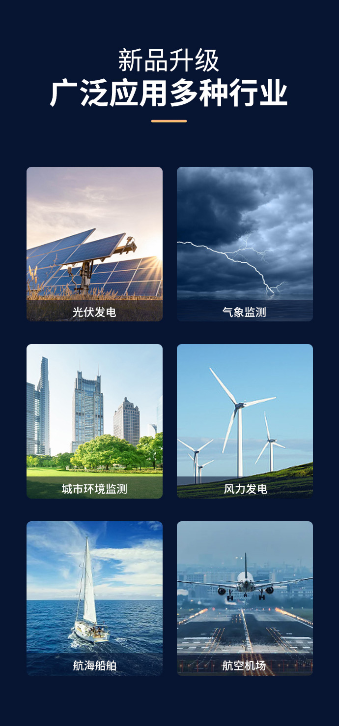 我司作为专业研发生产销售微型气象仪的企业,一直致力于微型气象仪和气象环境解决方案推广应用。具有完整的生产链、实力雄厚的技术团队和全面的营销团队,我们研发生产的超声波风速风向仪、五要素微气象仪、六要素微气象仪和小型自动气象站等气象产品,已广泛应用到光伏发电、气象监测、城市环境监测、风力发电、航海船舶、航空机场、桥梁隧道等领域,客户遍布全国各地,并取得了良好的社会效益和经济效益。