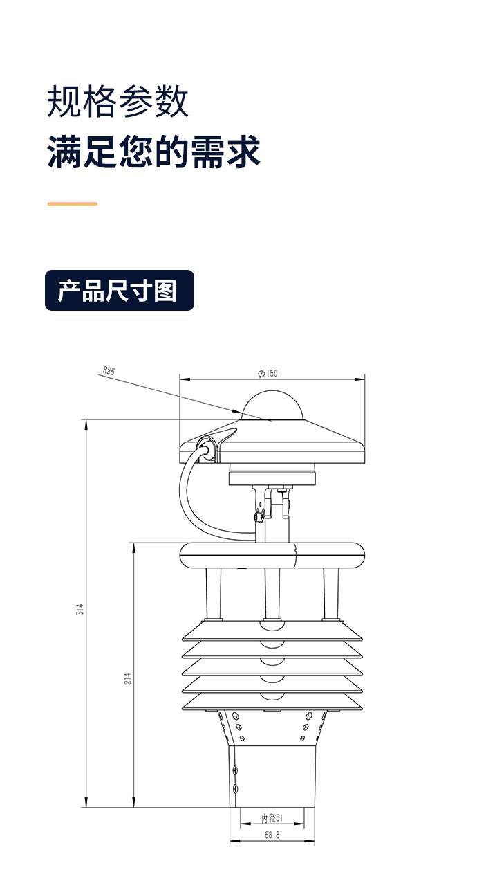 3、热电总辐射集成于微型气象仪顶部,角度0-50°可调