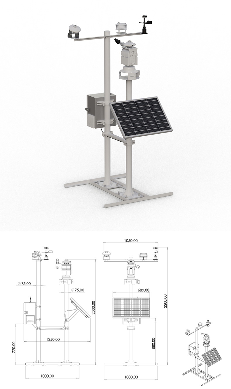 8、一体观测支架:外观设计的一体观测支架,便于现场人员可以快速、方便、简单一人进行设备安装调试。
