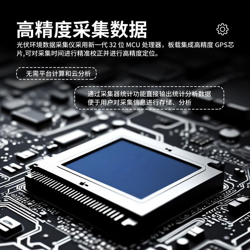 2、科技型采集仪:光伏环境数据采集仪采用新一代32位MCU处理器,板载集成高精度GPS芯片,可对采集时间进行精准校正并进行高精度定位。