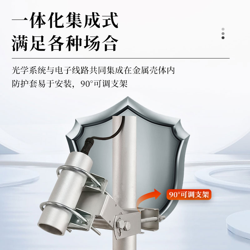 路面温度传感器是一体化集成式红外测温检测器。光学系统与电子线路共同集成在金属壳体内。防护套易于安装,90°可调支架;以满足各种野外条件下安装和进行不间断测量。