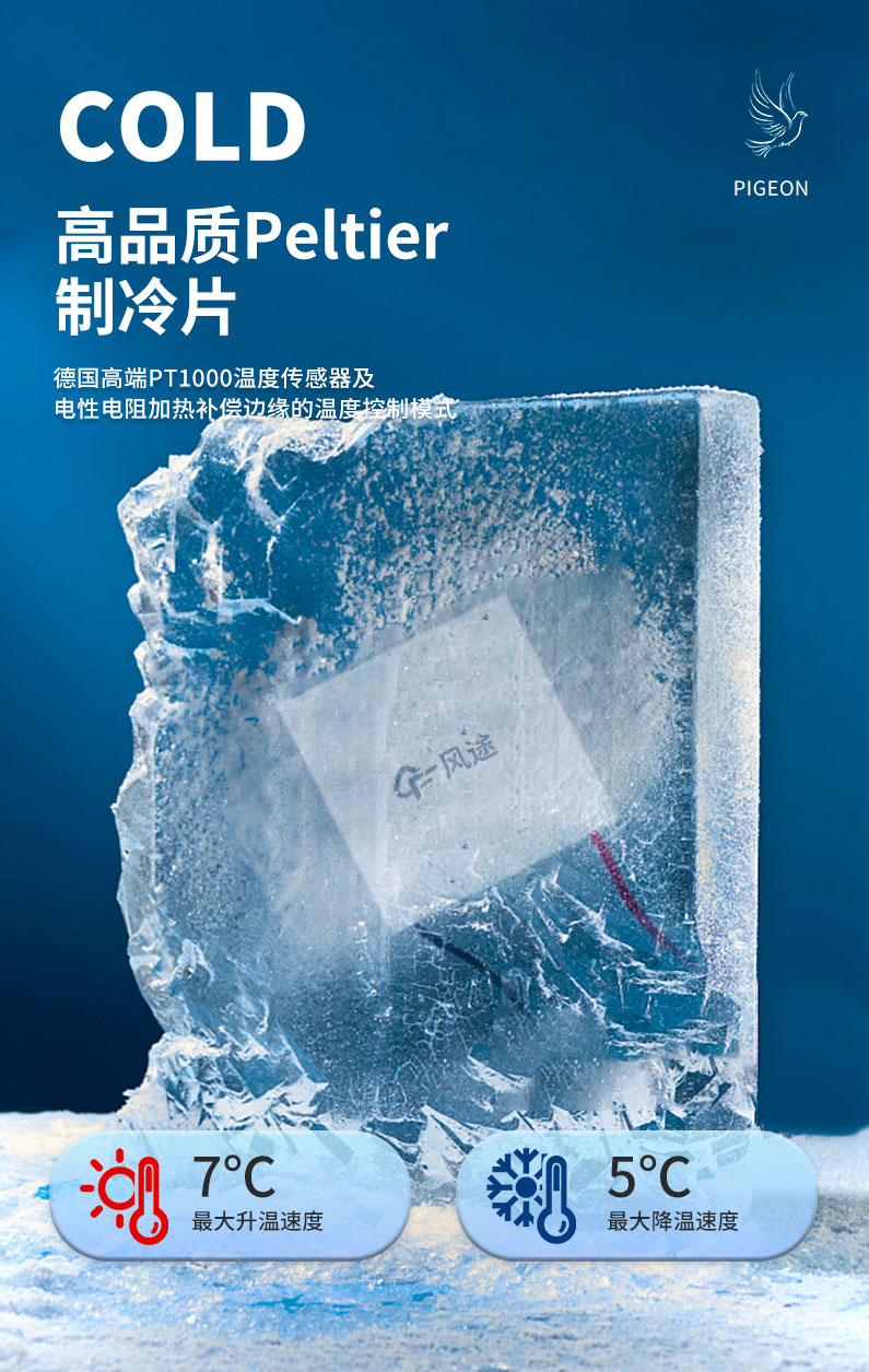 3.Marlow高品质Peltier制冷片,结合德国高端PT1000温度传感器以及电性电阻加热补偿边缘的温度控制模式,最大升温速度7℃,最大降温速度5℃,大大缩短实验时间。
