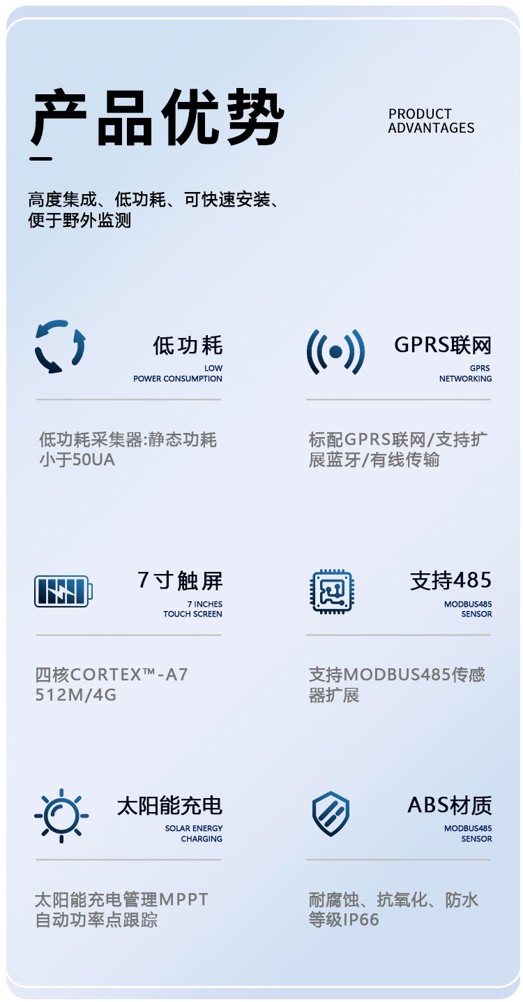 该设备由气象传感器,采集器,太阳能供电系统,立杆支架,云平台五部分组成。免调试,可快速布置,广泛运用于气象、农业、林业、环保、海洋、机场、港口、科学考察、校园教育等领域。