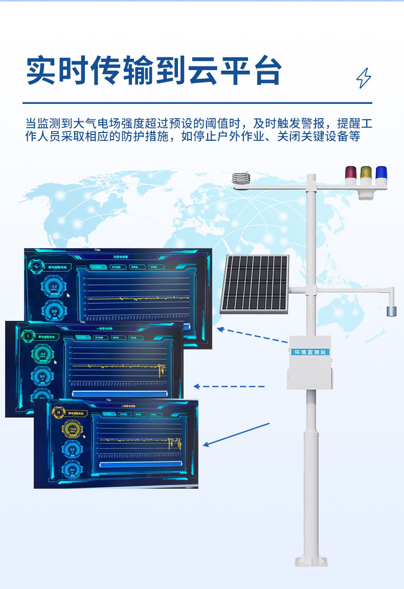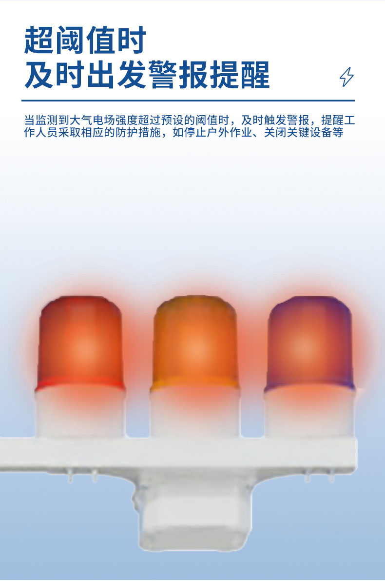 【产品简介】一、雷电预警系统产品简介雷电预警系统是全数字化电场探测与雷电预警平台,其核心电场探测结构基于电荷感应原理、采用MEMS(微机电系统)技术研制,无电机等易磨损可动机械部件,具有体积小···