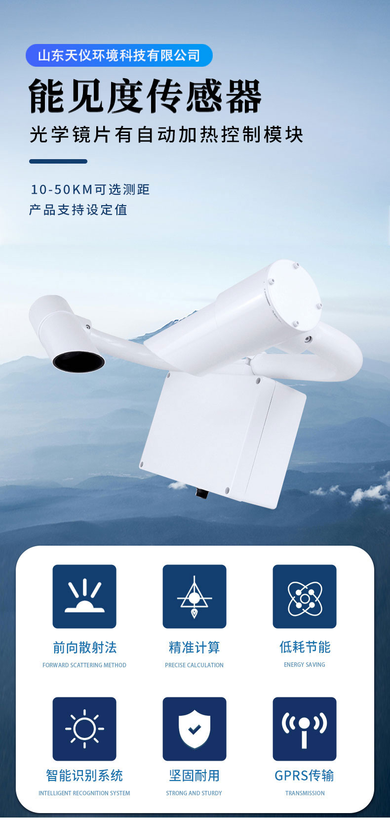 【产品简介】一、80KM能见度传感器产品简介N80型80KM能见度传感器采用前向散射法测量空气总消光系数,进而计算当前能见度,广泛用于道路交通、气象等行业。二、80KM能见度传感器技术特点1.···