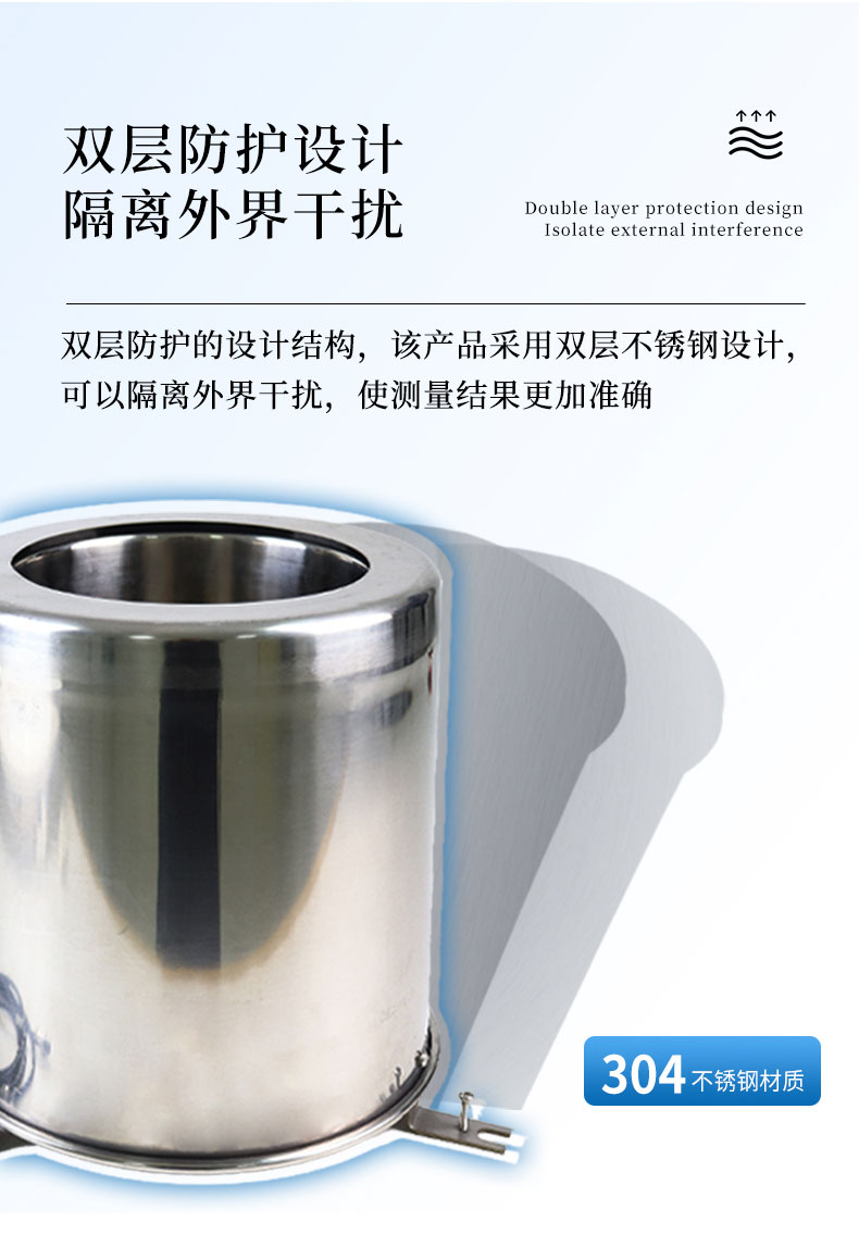 4.双层防护的设计结构,该产品采用双层不锈钢设计,可以隔离外界干扰,使测量结果更加准确;