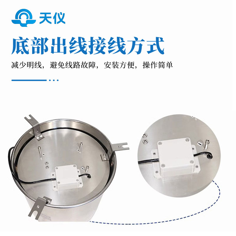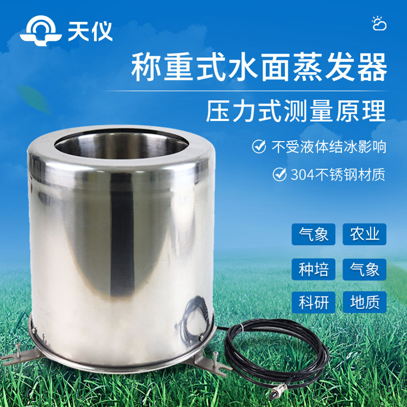 应用压力式测量原理,通过测量蒸发皿内液体重量变化,再计算出页面高度,从而测得蒸发量。能够适应各类环境的水面蒸发测量,不受液体结冰的影响,克服了使用超声波原理测量液面高度时出现的结冰时测量不准、无水时易损坏传感器、测量精度低等弊端。