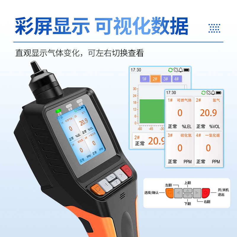便携式气体检测仪采用泵吸方式检测气体,敏感元件采用优质气体传感器,具有极好的灵敏度和出色的重复性,使用和维护方便,极大的满足了工业现场安全监测对设备可靠性的要求。