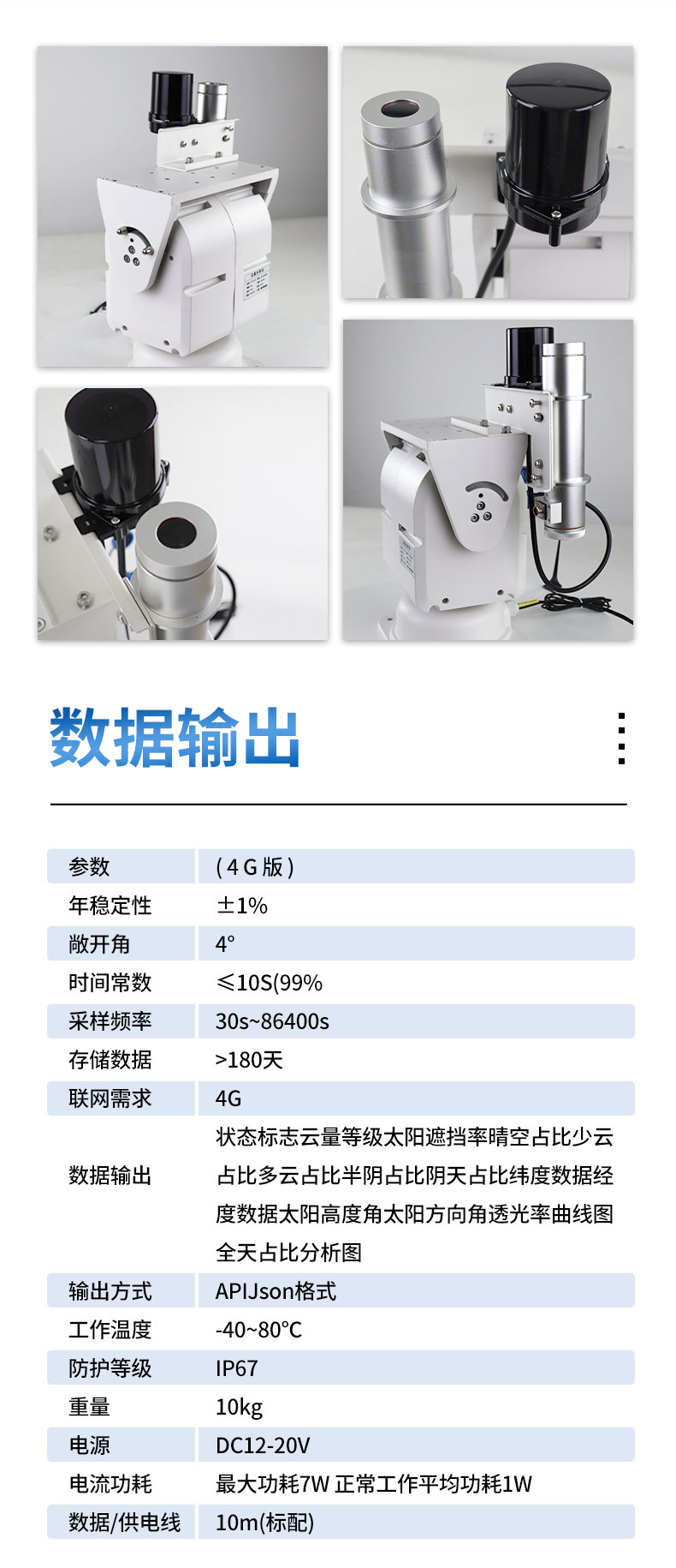 任何光照环境自动捕捉云层对太阳光影响,高灵敏度的光学传感器使任何环境下获取的数据更精准可靠。
