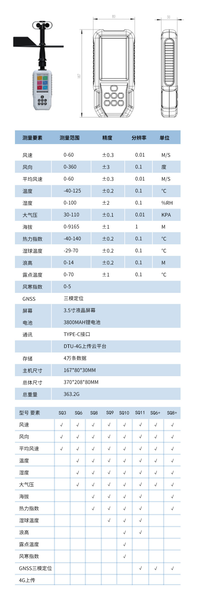 三、手持气象站技术参数