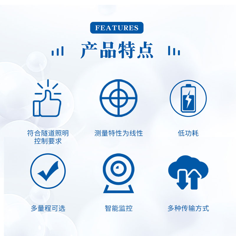 隧道洞内照度检测器能完全满足整个隧道照明控制的要求,预置控制模式的控制器根据光源测量值按预设参数自动进行切换照明开关,为隧道照明提供了最佳值。它的设计完全符合CIE关于隧道照明测量的要求,并能满足《公路隧道通风照明设计规范》,而且它的整体设计完全能满足野外恶劣的工作环境地要求。