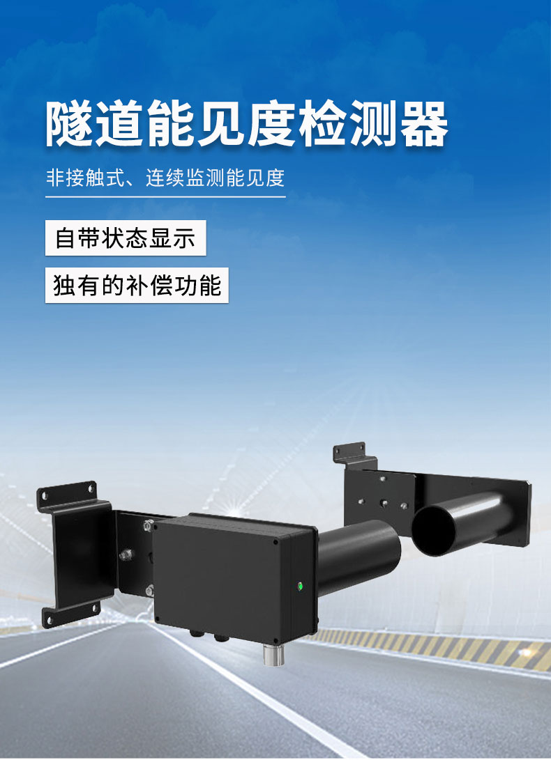 该智能检测仪内部自带补偿功能,在光学镜头在被污染情况,能自动进行增益补偿,从而保证了较长的维护周期。隧道是一种特殊的管状构造物,由于空间小,具有密闭性的特点,行经隧道的车辆所排放的废气,如不及时合理的排放出去,造成CO和悬浮颗粒物的聚集以及氮氧化物(NOX)等有毒气体超标,将直接关系到行经隧道的车辆司乘人员和维护工作人员的人身安全。