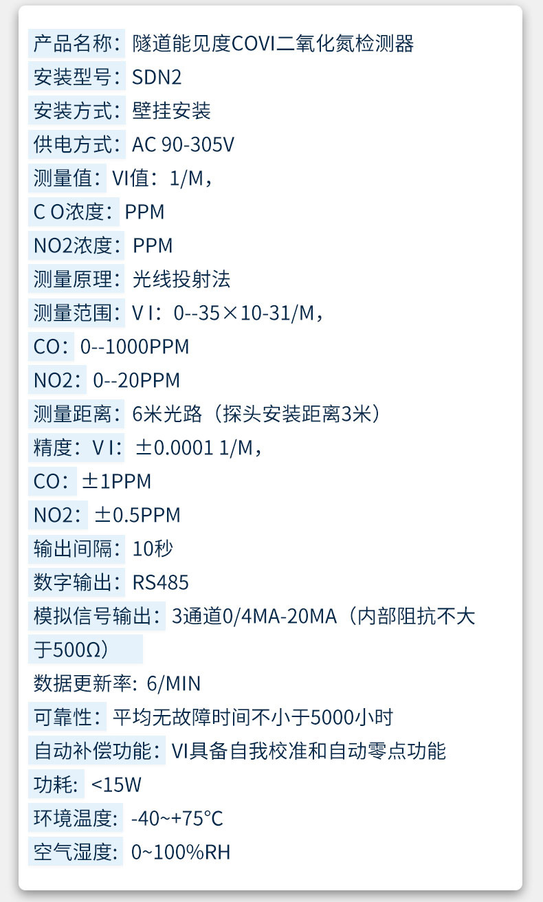 隧道能见度COVI二氧化氮检测器技术参数