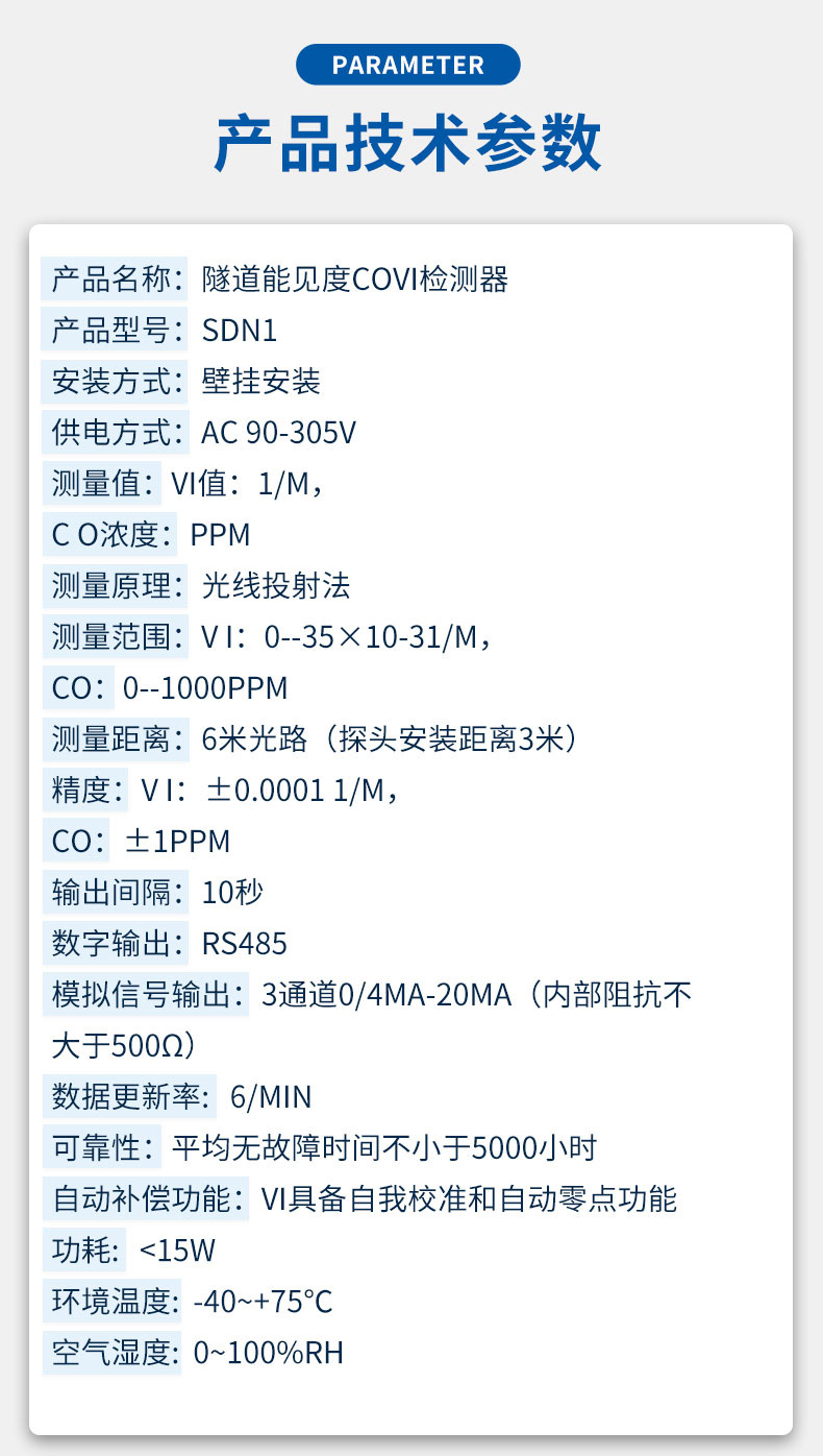 SDN2系列是设计用来在线采集VI/CO/NO2数据,提供给交通监管部门,为隧道通风及道路安全通行提供决策依据。