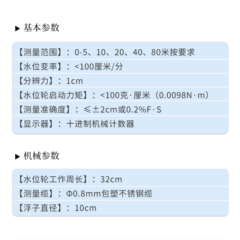 二、浮子水位计技术参数