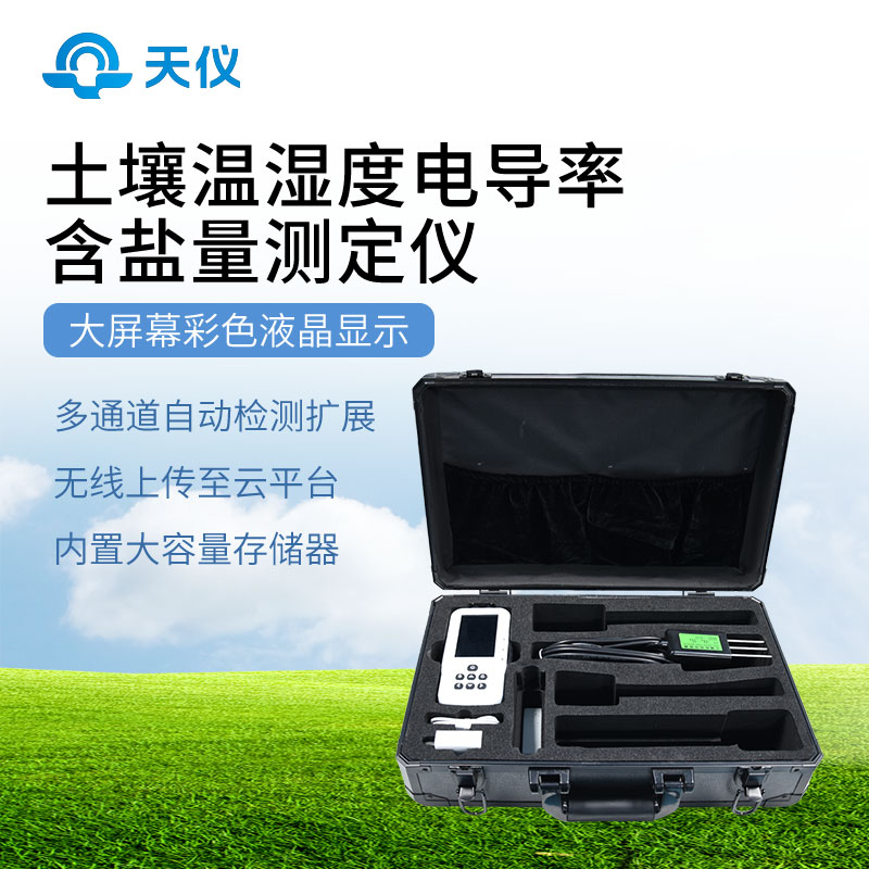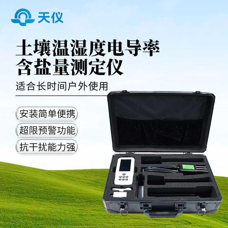 【产品简介】一、土壤温湿度电导率含盐量测定仪产品简介土壤温湿度电导率含盐量测定仪是一款高度集成的多功能环境监测设备,采用一体化结构设计,能够快速、准确地测量土壤中的含水量、温度、电导率、含盐量···