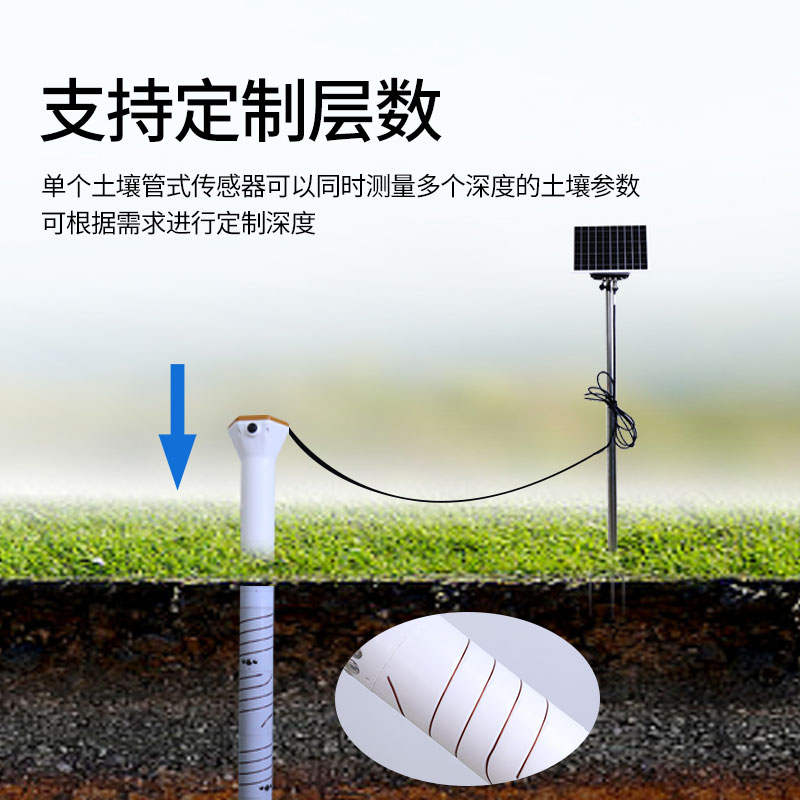 ★单个土壤管式传感器可以同时测量多个深度的土壤参数,监测深度可定制(小于1M)。