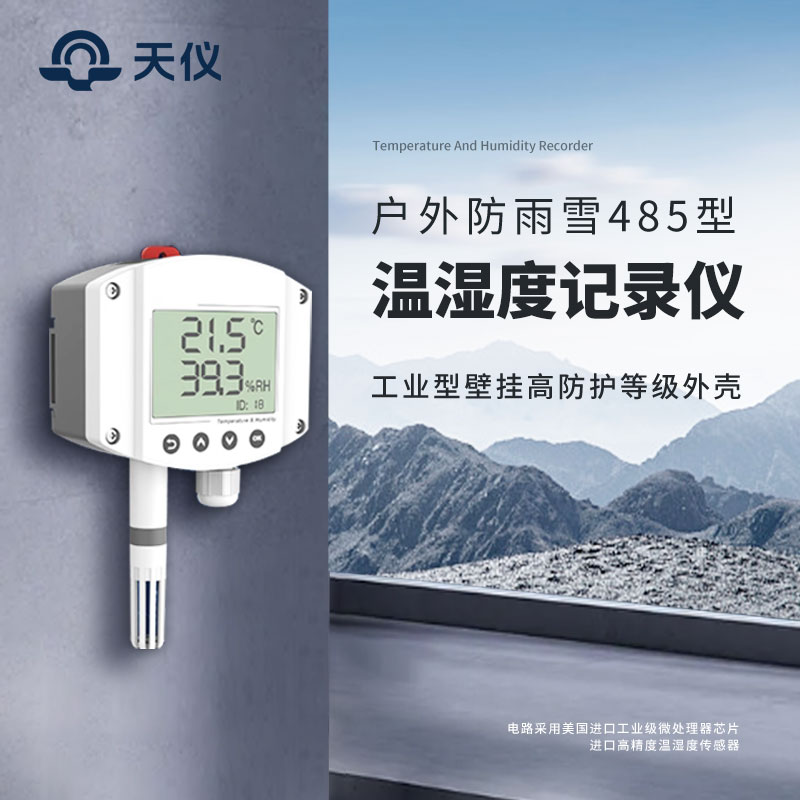 温湿度记录仪为工业型壁挂高防护等级外壳,防护等级IP65,防雨雪且透气性好。电路采用美国进口工业级微处理器芯片、进口高精度温湿度传感器,确保产品优异的可靠性、高精度和互换性。输出信号类型为 RS485,最远可通信 2000 米,标准的 modbus协议,支持二次开发。