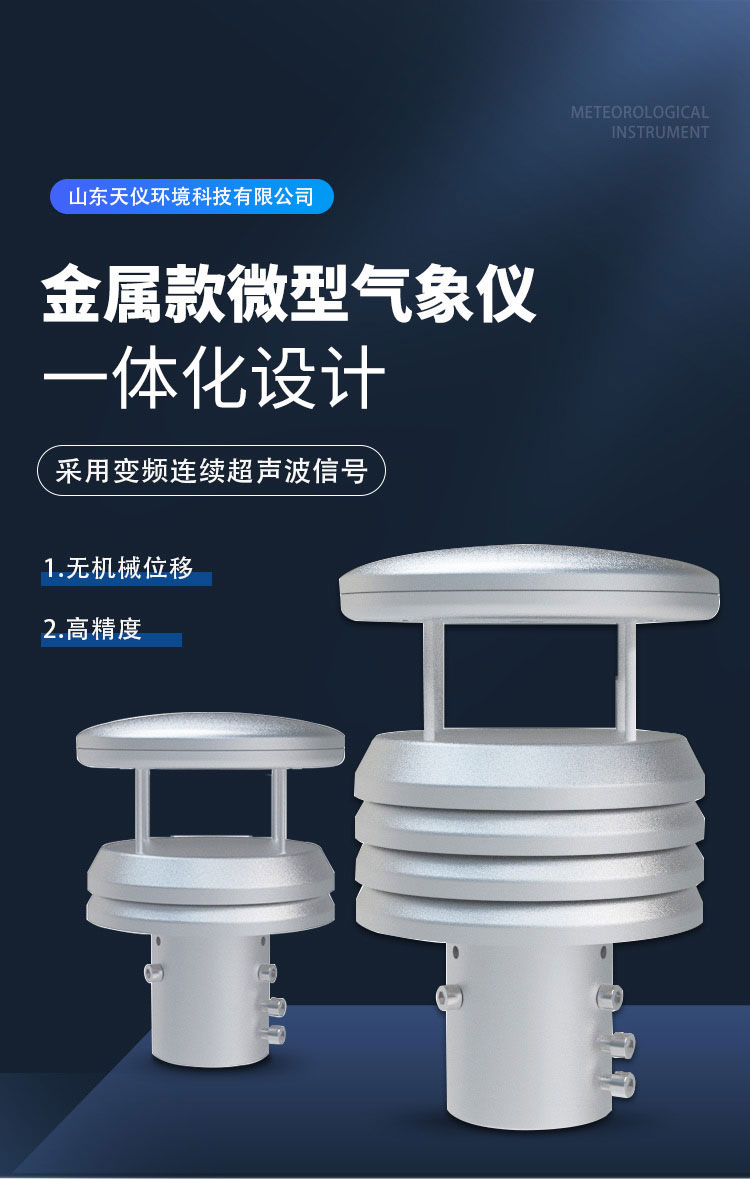 【产品简介】一、金属款超声波风速风向传感器产品简介山东天仪环境科技有限公司作为专业研发生产销售微型气象仪的企业,一直致力于微型气象仪和气象环境解决方案推广应用。具有完整的生产链、实力雄厚的技术···