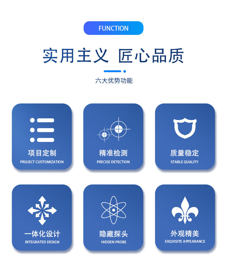 1、顶盖隐藏式超声波探头,避免雨雪堆积的干扰,避免自然风遮挡(实用新型专利,专利号ZL 2020 2 3215713.X)☆