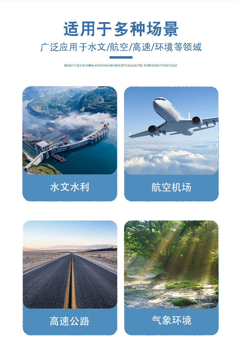 光学雨量监测站可广泛地应用于气象、防汛、农业、水文水利、环保、高速公路、机场和港口等领域。既可为气象台(站)、水文站、农林、国防、野外测报站等有关部门测量降水量、降水强度、降水时间等参数提供原始数据;也可为防洪、供水调度、电站、水库水情管理提供有参考价值的实时数据。