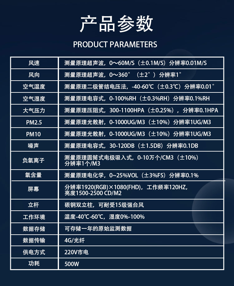 三、一体化负氧离子监测站技术参数