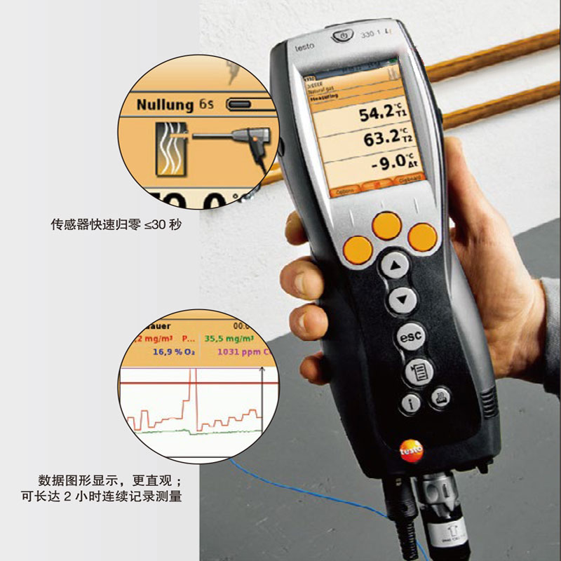 精确的读数,坚固的设计,简便的操作:作为专业人士在进行现场快速可靠的燃烧设备检测及燃烧效率分析时,这些都是对测量工具的基本要求。而这正是烟气分析仪的优势所在。