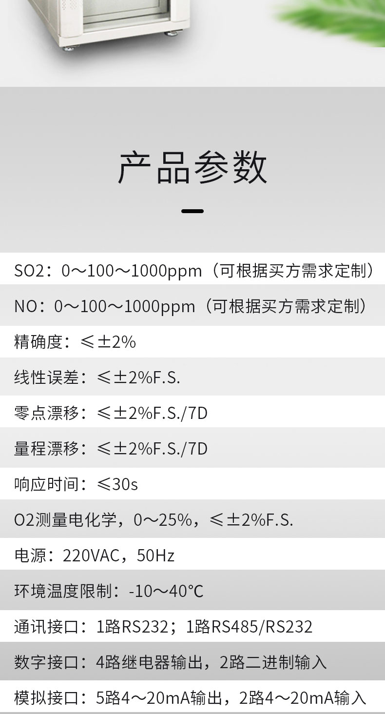 常规型CEMS烟气在线监测系统参数及范围