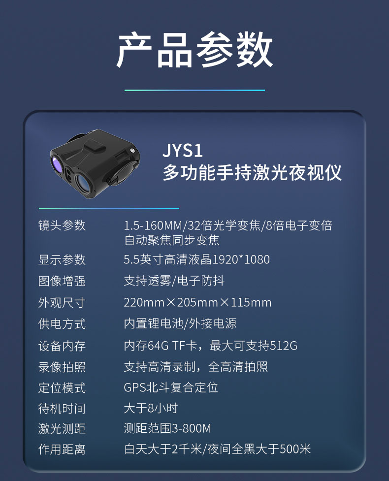 多功能手持激光夜视仪参数规格: